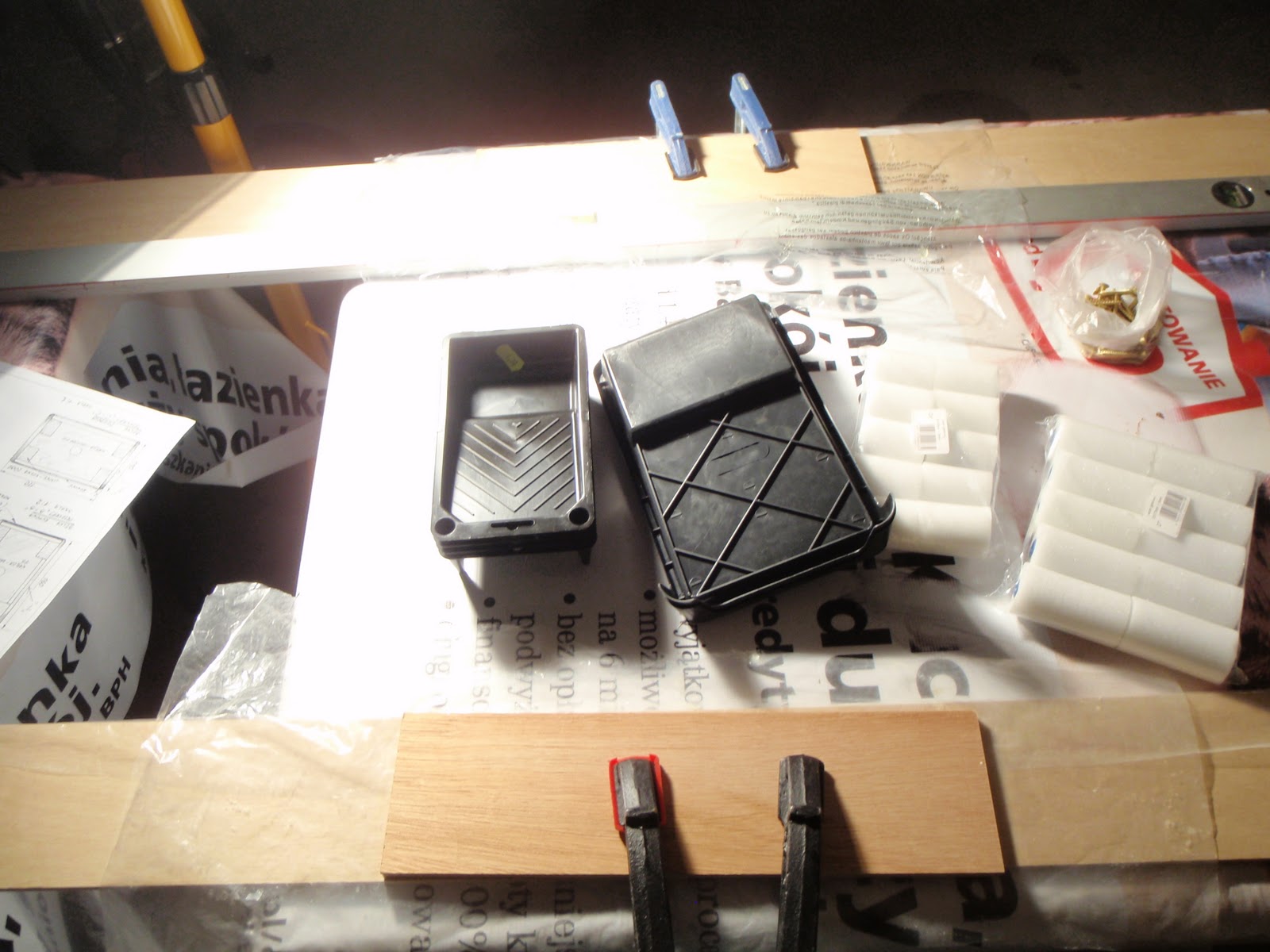 Listwy doklejone do 4,2 metrowych ścianek. Te cegły przeklinałem przez ostatnie trzy lata. Przekładane z miejsca na miejsce w końcu do czegoś się przydały- są niezłej jakości dociskami.